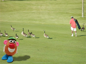 the golfer and geese