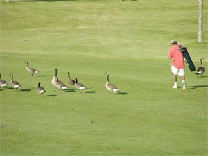 the golfer and geese